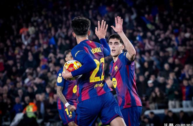 小将贝尔纳尔再次拿下一分后巴萨队员更为激动再拿一分就能扳平比分。